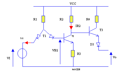 La base du transistor T3 étant reliée au + 5 V via la résistance R2, le transistor