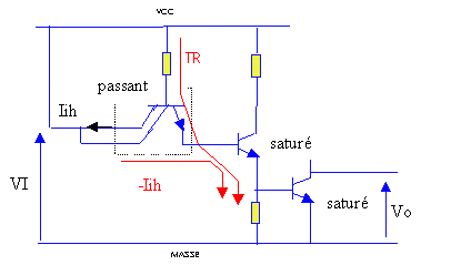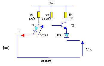 Vo = Vcc-2*0,7V=3,6 V soit un niveau logique 1